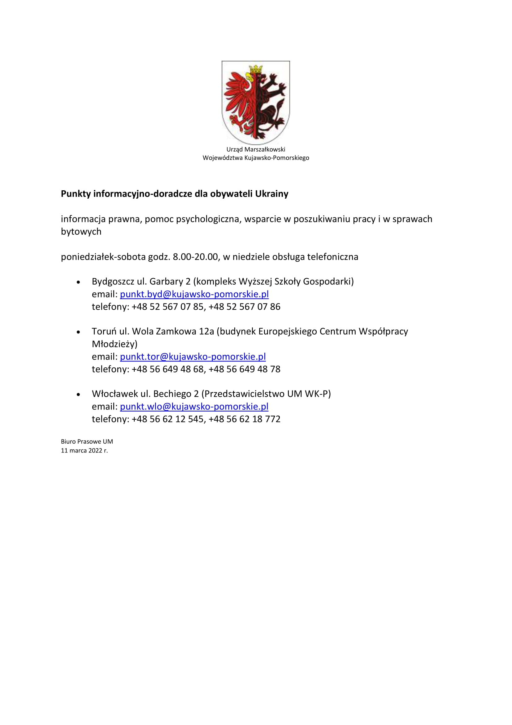 Інформаційно-консультаційні пункти для громадян України (Punkty informacyjno-doradcze dla obywateli Ukrainy)