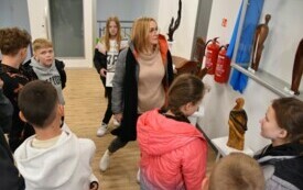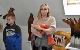 Dziś na "na lekcje z rzeźbą" dotarła młodzież ze Szkoły Podstawowej im. Karola Urbańskiego w Złotnikach Kujawskich. Pani Agnieszka Kostecka - nauczyciel szkoły opowiedziała młodzieży różne ciekawostki związane z wystawą i pracą w drewnie. Młodzi ludzie z ciekawością obejrzeli propozycję Biblioteki - Międzypokoleniowego Centrum Kultury.