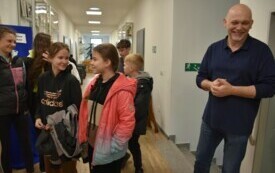 Młodzież na wystawie rzeźby Krzysztofa Fydrycha